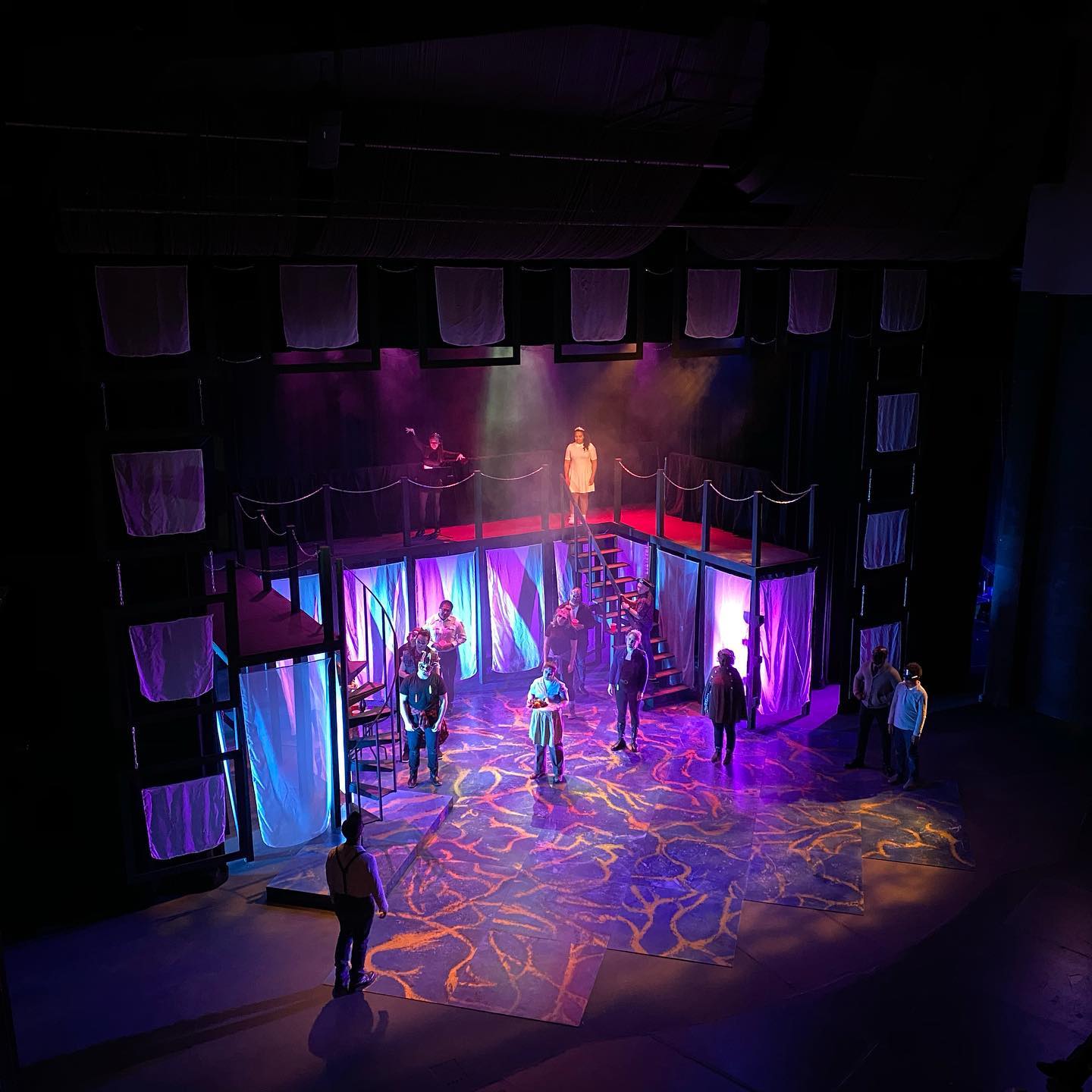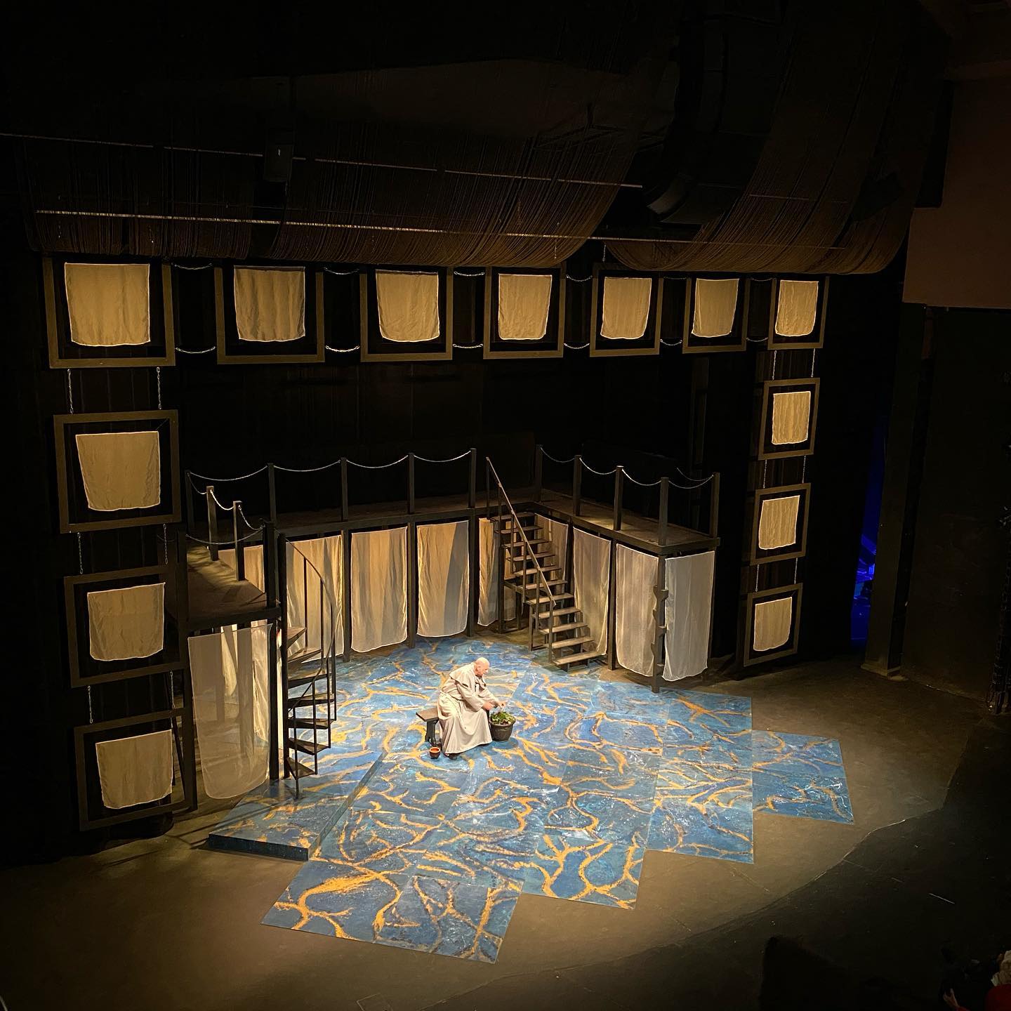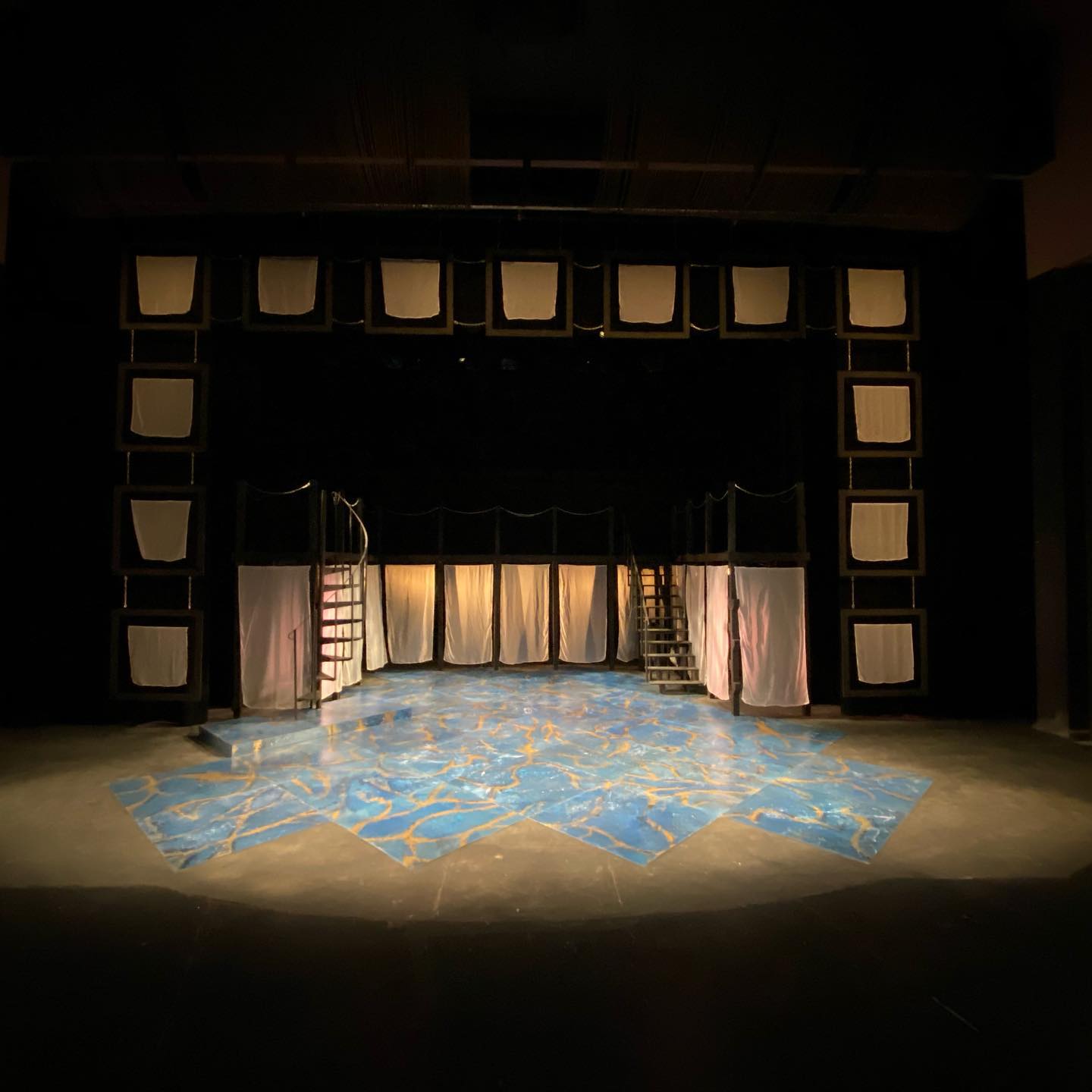 January 2020 · Classical design with draped fabric windows, suspended textiles, multi-level platforms, and marbled floor projections